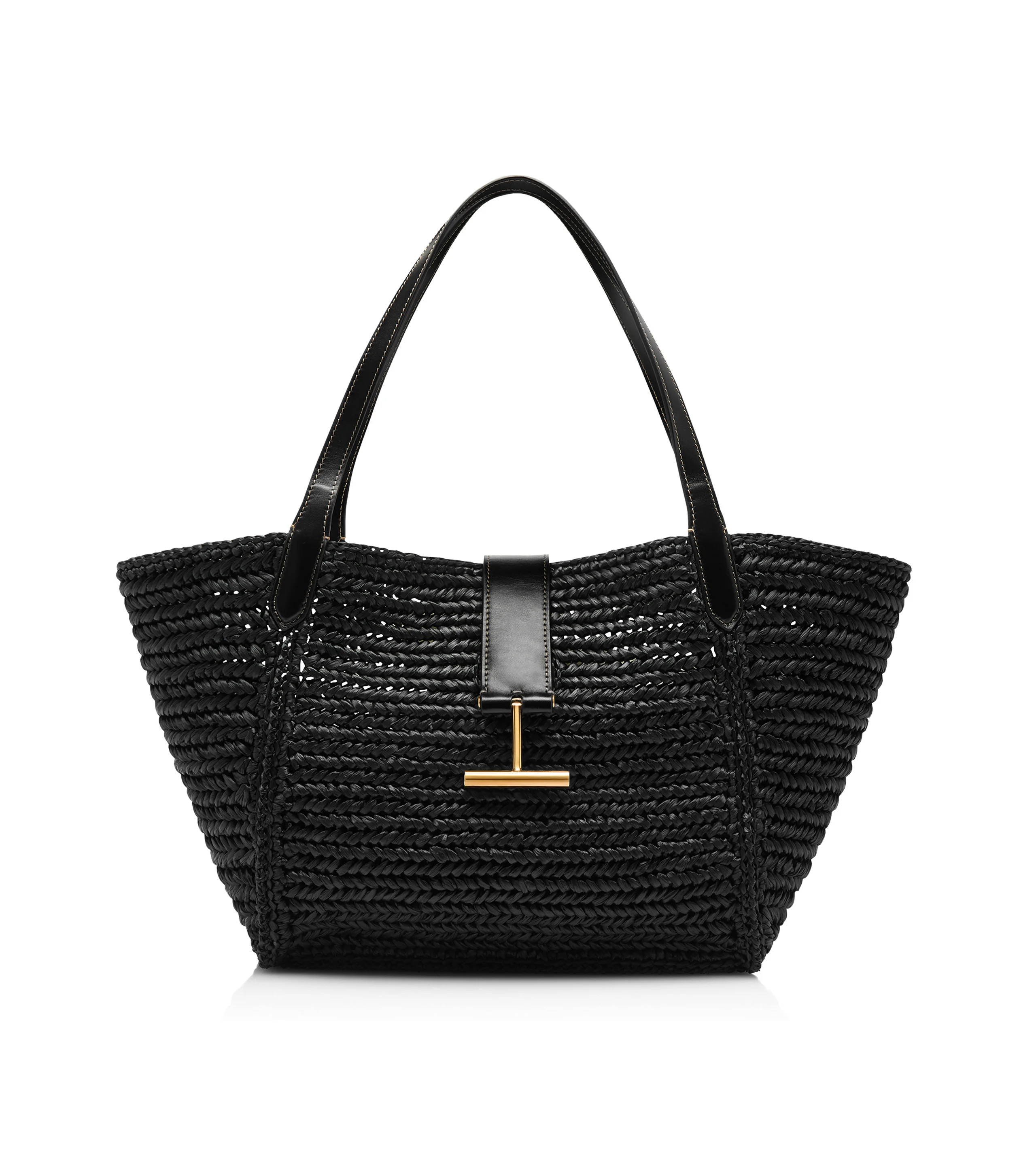 - HANGING T SIGNATURE HARDWARE - HAND-CROCHETED RAFFIA - HAND, ELBOW AND SHOULDER CARRY - MAGNETIC CLOSURE - ONE COMPARTMENT - INSIDE OPEN POCKET - NO LINING - DIMENSIONS: 23 X 26 X 13 CM - HANDLES DROP: 28 CM - RAFFIA: 100% VISCOSE - LEATHER: 100% CALFSKIN - MADE IN ITALY