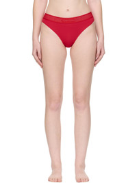 Stretch modal jersey thong. · Jacquard logo at elasticized waistband · Partial stretch jersey lining Supplier color: Scarlet Body: 97% modal, 3% elastane. Trim: 82% polyester, 9% nylon, 9% elastane. Made in Bosnia And Herzegowina 252076F081000
