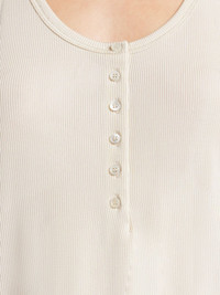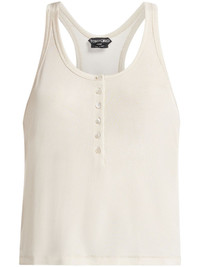 ribbed jersey tank top Highlights - White - Jersey texture - Fine ribbed - Scoop neck - Front button placket - Sleeveless - Racerback - Straight hem Made in Italy Composition Viscose 95%, Elastane 5%