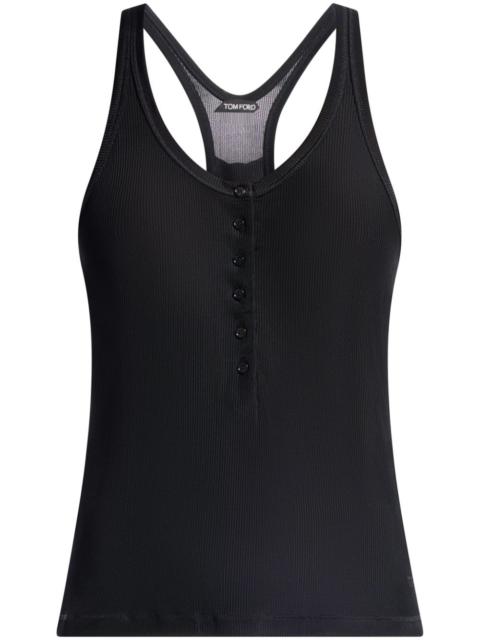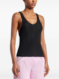 ribbed jersey tank top Highlights - Black - Jersey texture - Fine ribbed - Scoop neck - Front button placket - Sleeveless - Racerback - Straight hem Made in Italy Composition Viscose 95%, Elastane 5%