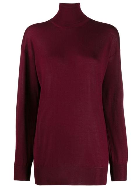 ribbed-knit roll neck sweater beige cashmere-silk blend ribbed knit roll neck long sleeves straight hem Made in Italy Composition Cashmere 70%, Silk 30% SIZE & FIT Model measurements Height 5 ft 10 in(1.77 m) Bust/Chest 31.49 in(80 cm) Hips 33.85 in(86 cm) Waist 22.44 in(57 cm) FittingInformation This piece fits true to size. We recommend you get your regular size Cut for a relaxed fit Made with a mid-weight fabric Washing instructions Dry Clean Only