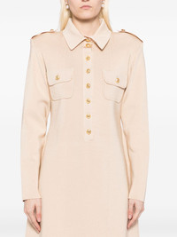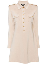 ribbed mini dress Highlights - Blush beige - Stretch-design - Ribbed knit - Short front button placket - Classic collar - Epaulettes - Long sleeves - Two button-fastening chest pockets - Unlined - Straight hem - Thigh-length Made in Italy Composition Viscose 67%, Polyamide 31%, Polyurethane 2% SIZE & FIT Model measurements Height 5 ft 9 in(1.76 m) Bust/Chest 31.1 in(79 cm) Hips 35.03 in(89 cm) Waist 24.4 in(62 cm) FittingInformation Designed to be unstructured, offering a loose fit throughout Made with a midweight knit, this piece offers some stretch