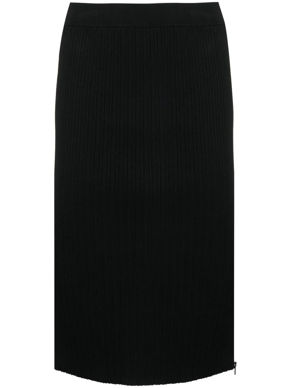 ribbed silk-blend pencil skirt Highlights - Black - Silk blend - Ribbed knit - Pencil silhouette - Side zip fastening - Below-knee length Made in Italy Composition Silk 80%, Polyester 14%, Polyamide 6% SIZE & FIT Model measurements Height 5 ft 10 in(1.77 m) Bust/Chest 32.67 in(83 cm) Hips 35.43 in(90 cm) Waist 23.62 in(60 cm) FittingInformation This midi-length skirt is intended to be worn just below the waist The elasticated waist allows for a comfortable fit Made with a midweight knit, this piece offers some stretch This piece fits true to size – take your usual size Washing instructions Dry Clean Only