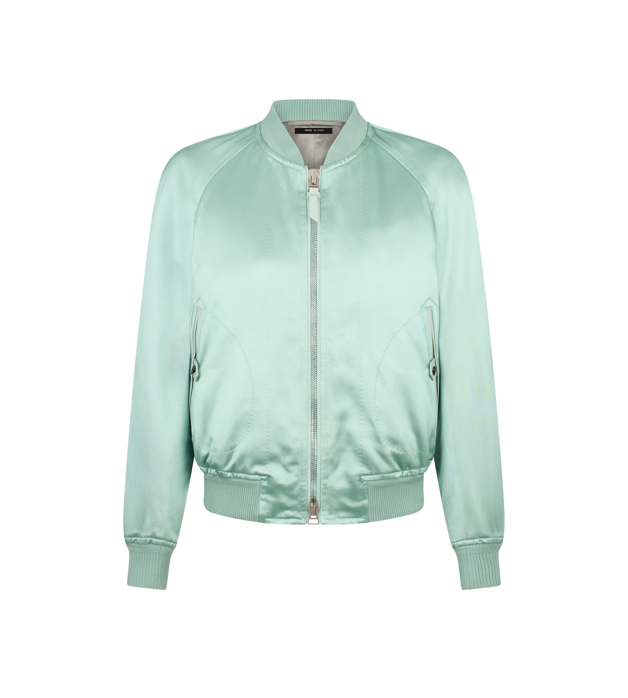 - BOMBER JACKET - RAGLAN SLEEVE - KNITTED RIB TRIMS ALONG WAIST, CUFFS AND COLLAR - TF LEATHER PULLER WITH EMBOSSED LOGO - TF SIGNATURE DOUBLE ENDED SILVER GOLD ZIP FOR CLOSURE - JET POCKETS - TONAL LEATHER FRAMING ALONG POCKETS WITH TWIN NEEDLE STITCHING - TONAL LEATHER PIPING AS A FINISHING DETAIL ALONG THE ZIP - HORN BUTTONS - FULLY LINED - CRAFTED IN COTTON AND VISCOSE BLEND - 54% COTTON 46% VISCOSE - MADE IN ITALY