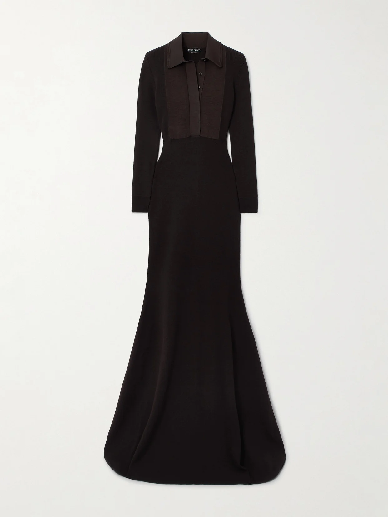 TOM FORD's smart yet elegant gown creates the illusion of effortlessly styled separates. Made from wool-blend, it has a polo-style top and figure-hugging ribbed skirt that falls to a pooling hem with a dramatic back split.