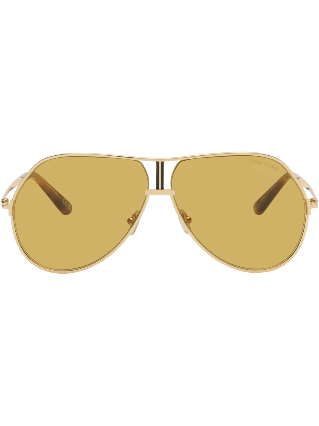 Aviator-style metal-frame sunglasses. · Yellow lenses · 100% UVA/UVB protection, category 2 · Logo etched at lens · Double bridge · Adjustable rubber nose pads · Logo plaque at tortoiseshell acetate temple tips · Includes case · Size: 63.10 135 Supplier color: Yellow Metal. Made in Italy 252076F005003