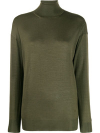 roll neck jumper Khaki green cashmere-silk blend roll neck jumper from TOM FORD featuring a ribbed roll neck, dropped shoulders, long sleeves, a ribbed hem and cuffs and a relaxed fit. Made in Italy Composition Cashmere 70%, Silk 30% SIZE & FIT Model measurements Height 5 ft 10 in(1.78 m) Bust/Chest 32.67 in(83 cm) Hips 35.82 in(91 cm) Waist 24.01 in(61 cm) FittingInformation This piece fits true to size. We recommend you get your regular size Cut for a relaxed fit Made with a lightweight fabric Washing instructions Dry Clean Only