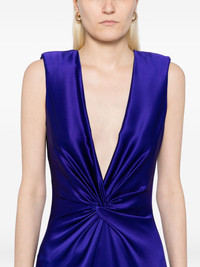 ruched detailing evening dress Highlights - Violet purple - Concealed rear fastening - V-neck - Sleeveless Made in Italy Composition Lining: Silk 94%, Elastane 6% Outer: Silk 100% SIZE & FIT Model measurements Height 5 ft 9 in(1.76 m) Bust/Chest 31.1 in(79 cm) Hips 35.03 in(89 cm) Waist 24.4 in(62 cm) FittingInformation Designed for a slim fit that sits just away from the body offering a close yet comfortable fit The vented hem offers movement at the rear Made from a midweight non-stretch fabric, this piece offers minimal elasticity when worn This piece fits large – take one size down. If you have petite frame you may wish to take a further size down Washing instructions Dry Clean Only