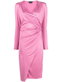 ruched wrap midi dress This dress from TOM FORD showcases the label’s attention to detail. Crafted from fluid silk, the wrap construction is highlighted with draped ruching. Made in Italy Composition Outer: Polyester 100%, Silk 100% Lining: Polyamide 81%, Spandex/Elastane 19% SIZE & FIT Model measurements Height 5 ft 10 in(1.77 m) Bust/Chest 32.67 in(83 cm) Hips 35.43 in(90 cm) Waist 23.62 in(60 cm) FittingInformation This piece fits true to size. We recommend you get your regular size Designed for a close fit at the bust, waist and hips Made with a mid-weight stretch fabric Washing instructions Dry Clean Only
