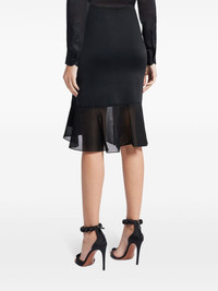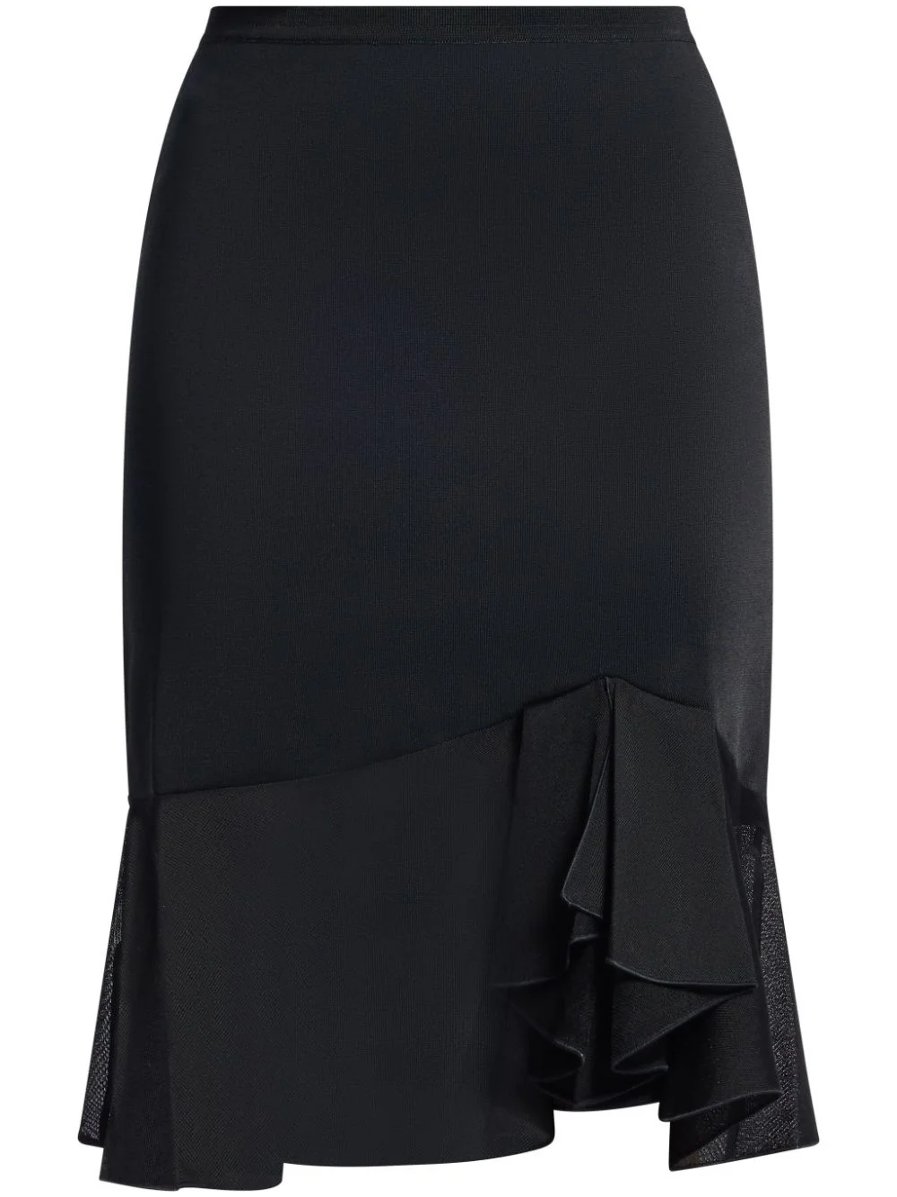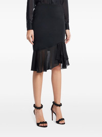 asymmetric draped skirt Highlights - Black - Pencil silhouette - Semi-sheer panels - Elasticated waistband - Ruffle hem - Knee-length Made in Italy Composition Viscose 91%, Polyamide 8%, Polyurethane 1% SIZE & FIT FittingInformation This midi-length skirt is intended to be worn just below the waist Made from a midweight non-stretch fabric, this piece offers minimal elasticity when worn