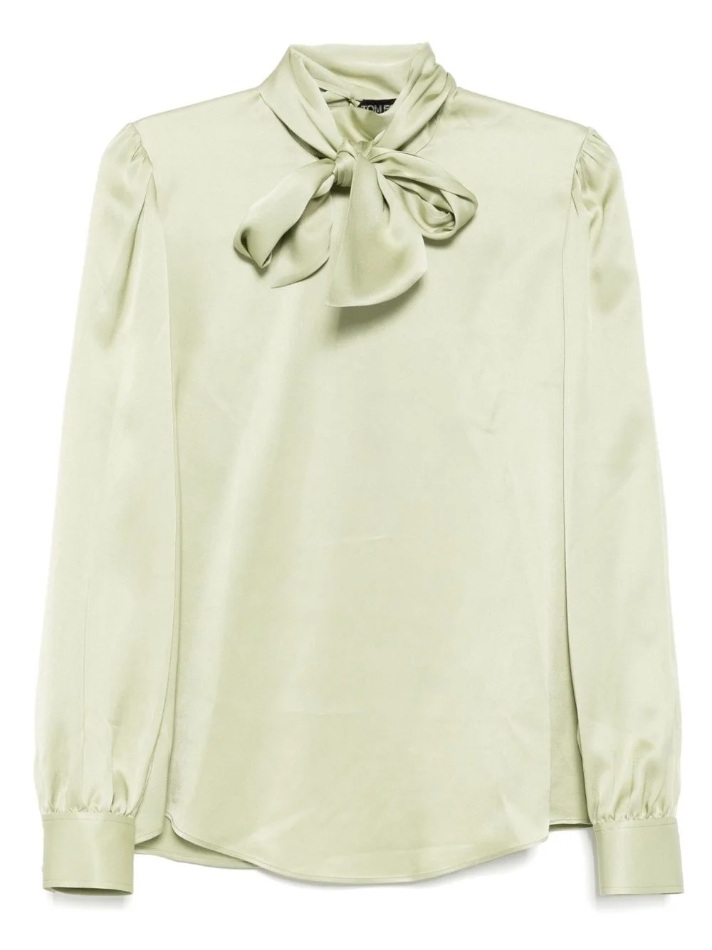 satin bow-detail blouse Highlights - Mint green - Keyhole detail to the rear - Long puff sleeves - Buttoned cuffs Made in Italy Composition Silk 100% SIZE & FIT Model measurements Height 5 ft 10 in(1.77 m) Bust/Chest 30.7 in(78 cm) Hips 35.82 in(91 cm) Waist 21.25 in(54 cm) FittingInformation Designed to be unstructured, offering a loose fit throughout Made from a midweight non-stretch fabric