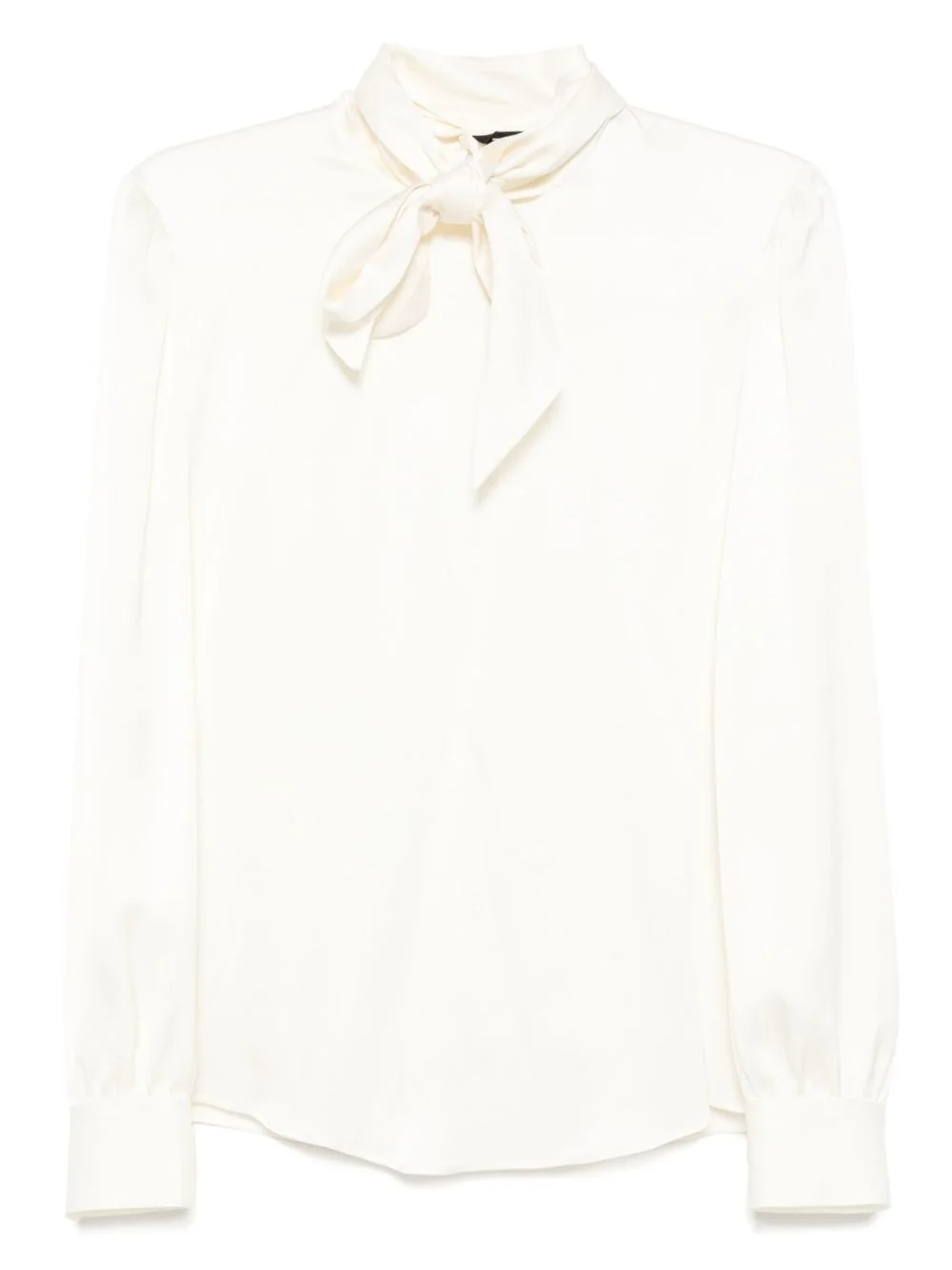 satin bow-detail blouse Highlights - Off-white - Keyhole detail to the rear - Long puff sleeves - Buttoned cuffs Made in Italy Composition Silk 100% SIZE & FIT Model measurements Height 5 ft 10 in(1.77 m) Bust/Chest 30.7 in(78 cm) Hips 35.82 in(91 cm) Waist 21.25 in(54 cm) FittingInformation Designed to be unstructured, offering a loose fit throughout Made from a midweight non-stretch fabric