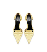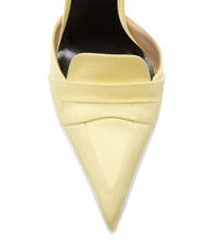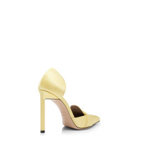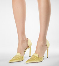PRODUCT NO: W3770-TSA001N Pointy-toe D’Orsay Pump in pastel yellow satin, set on a 105 mm stiletto heel with signature T —an elegant touch on the Eva shoes, unmistakable TOM FORD. For an ideal fit, we advise choosing TOM FORD Women’s shoes in half a size larger than your standard size, as they tend to run slightly small. Composition: 68% viscose, 32% silk, Lining: leather, Sole: leather Heel: 105 mm Made in Italy