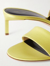 The sculptural kitten heels of TOM FORD's sandals are detailed with the label's signature gold-tone 'T' emblem. They're made from rich yellow satin with rounded toes.