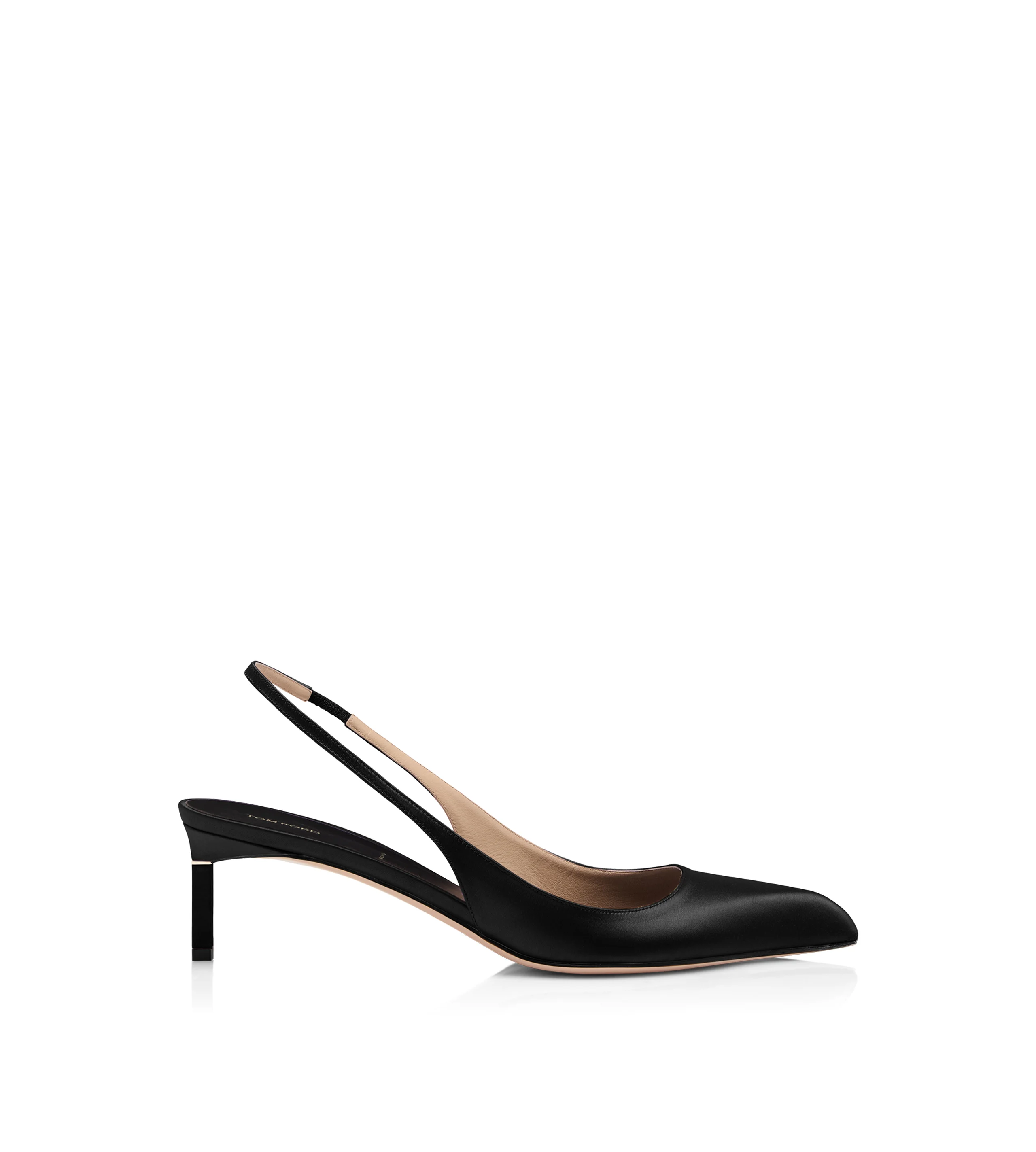 - POINTED TOE DESIGN WITH PRONOUNCED BOMBE EFFECT - 55 MM STILETTO HEEL WITH SIGNATURE T HARDWARE - SLINGBACK STRAP WITH INNER-SIDE ELASTIC COVERED IN LEATHER - LINING: NUDE LEATHER - INSOLE: BLACK LEATHER WITH SCREEN PRINTED LOGO - SOLE: NUDE LEATHER WITH RUBBER TAP DETAIL - 68% VI + 32% SILK - MADE IN ITALY