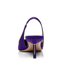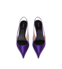 PRODUCT NO: W3793-TSA001P An elegant TOM FORD slingback offered in satin, defined by a pointed bombe toe and a lower stiletto heel with signature T hardware. Composition: 68% viscose, 32% silk Lining: nude leather Sole: nude leather with rubber tap detail Heel: 55 mm stiletto heel Galvanic: pale gold Made in Italy