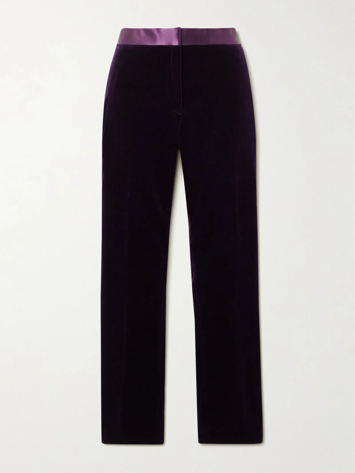 Satin-trimmed Cotton-blend Velvet Straight-leg Pants