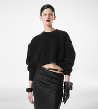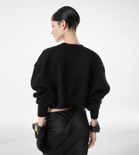 - COUTURE SLEEVE SWEATSHIRT - CREWNECK - CROPPED DOUBLE KNIT - RIBBED COLLAR, CUFFS AND HEM - CRAFTED IN SCULPTURAL DOUBLE FACE WOOL CASHMERE - 66% VIRGIN WOOL 28% CASHMERE 5% POLYAMIDE 1% ELASTANE