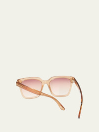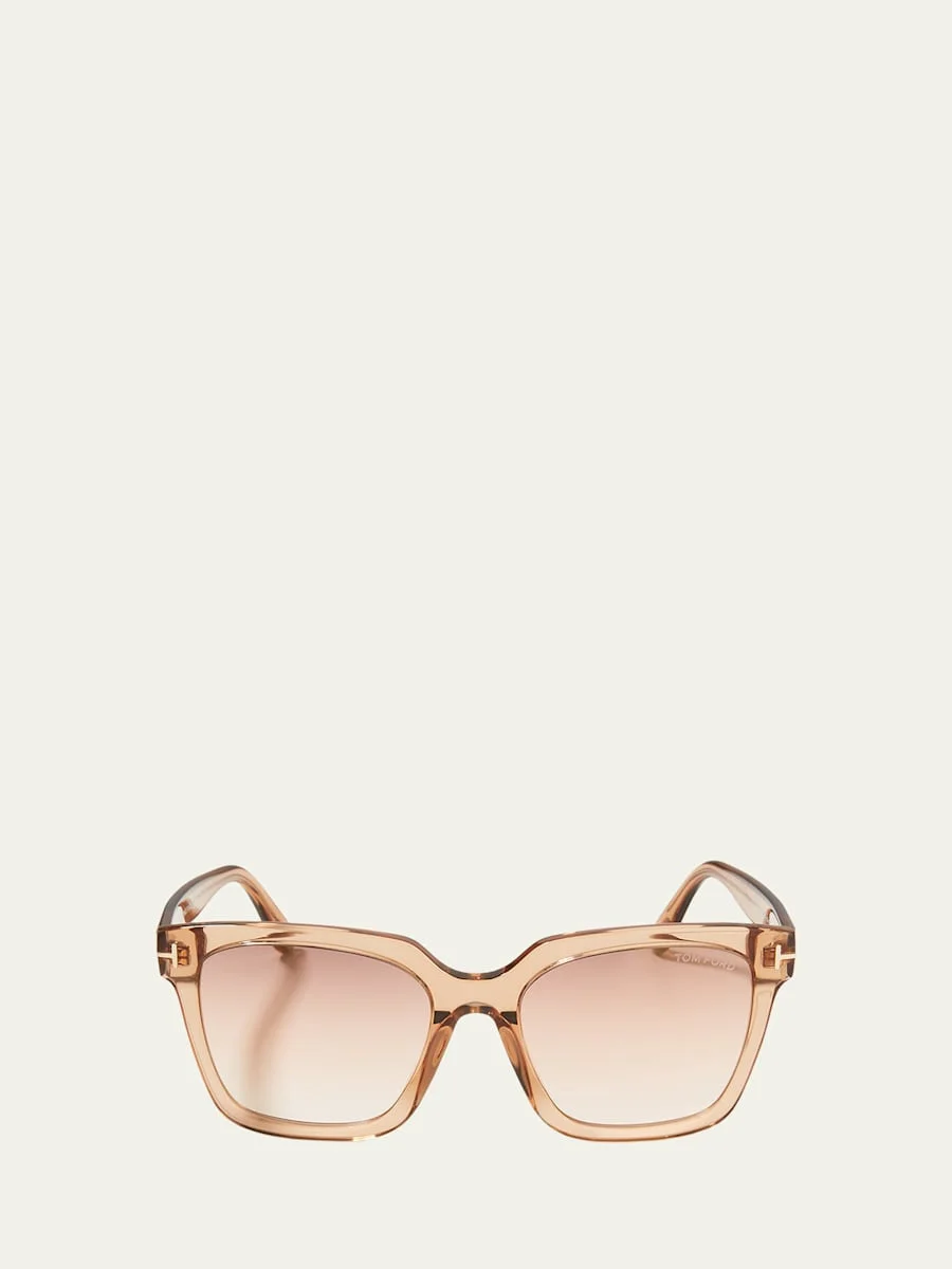 TOM FORD "Selby" square sunglasses in plastic Lens/bridge/temple (in mm): 55-19-140 Signature T logo on tempels Gradient lenses; logo print Thin, tapered arms Engraved logo on earpieces 100% UVA/UVB protection Made in Italy Proposition 65 warning for California residents Online Inquiries: BGS21_D42FR| Store Inquiries: #4159721