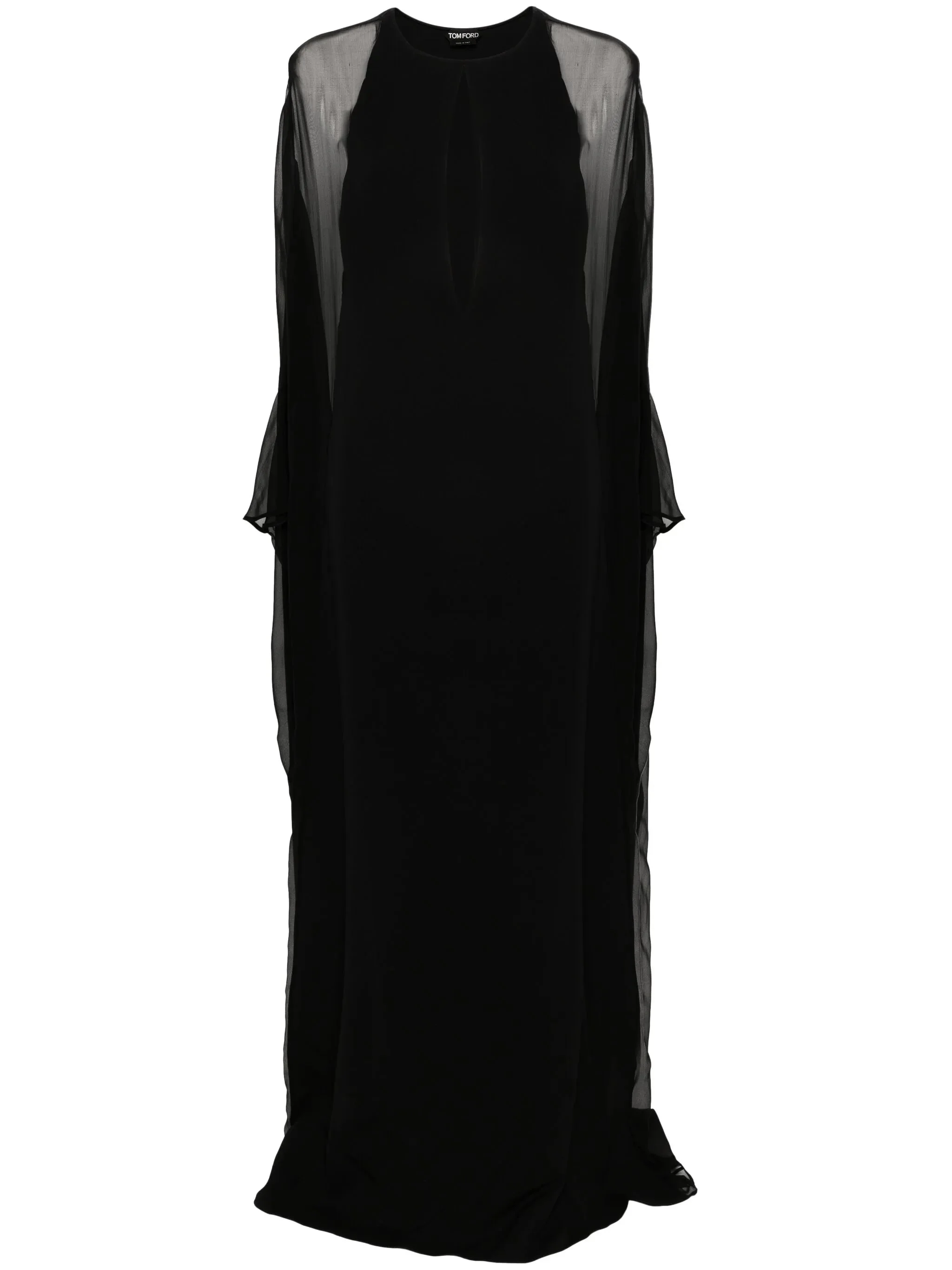 black stretch-silk crepe texture chiffon crepe to the sides and sleeves panelled design semi-sheer construction to the sides and sleeves keyhole neck batwing sleeves floor-length front hook and eye fastening flared hem unlined - Color: BLACK - Made in: Italy - Designer Style ID: FAX1115 KF0036 LB999 Composition and care Outer Composition Silk: 94.0%, Outer Composition Elastane: 6.0%