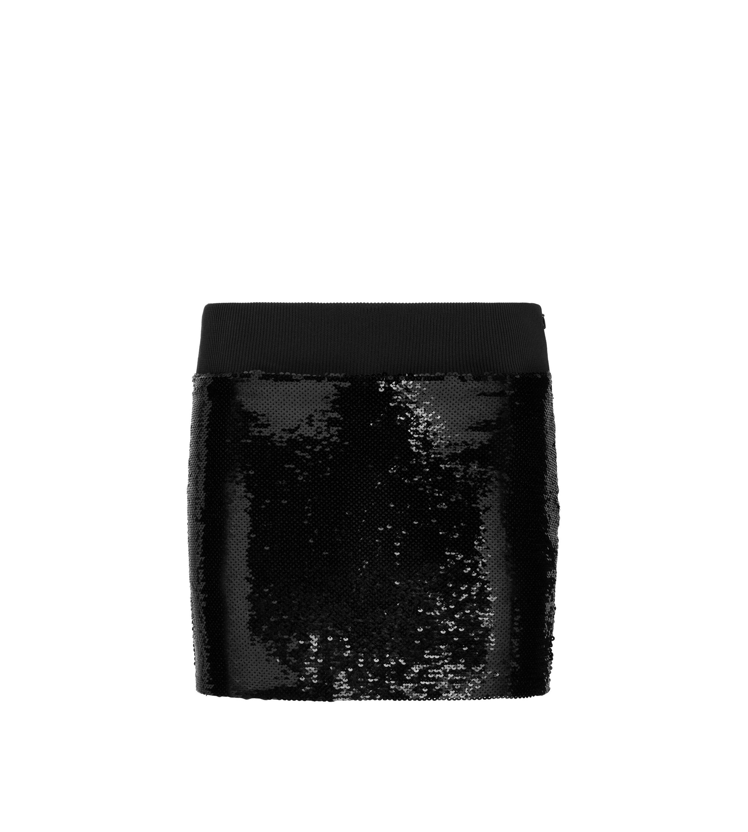 - EMBROIDERED MINI SKIRT - SILK RIB WAISTBAND - INVISIBLE SIDE ZIP - INTERNAL TOM FORD ARCHIVE LABEL - CRAFTED IN 3MM LIQUID SEQUINS ON STRETCH TULLE - 100% POLYESTER ON BASE 84% NYLON 16% ELASTANE