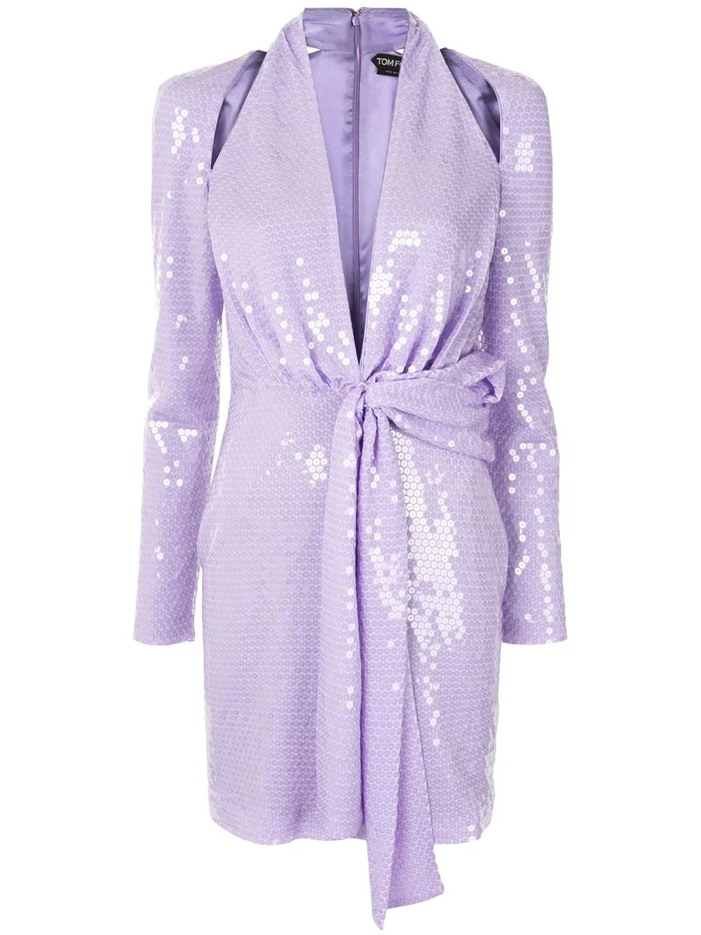 sequin tie waist dress It's your turn to be in the spotlight for a change. And this sequin tie waist dress from TOM FORD guarantees that all eyes will be on you. Finally, you'll be the centre of attention. Featuring sequin embroidery, a cut-out detail, a deep V back, a tie waist, long sleeves and a short length. Made in Italy Composition Viscose 100% SIZE & FIT Model measurements Height 5 ft 10 in(1.78 m) Bust/Chest 31.49 in(80 cm) Hips 34.64 in(88 cm) Waist 23.62 in(60 cm) FittingInformation This piece fits true to size. We recommend you get your regular size Designed for a close fit at the bust, waist and hips Washing instructions Dry Clean Only