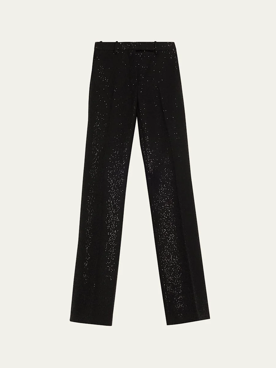Subtle sparkle in an elevated tailoring piece, these TOM FORD pants are cut from a woven crepe designed with crisp straight legs for polished evening elegance. Mid rise sits high on hip Side slip pockets Back welt pockets Straight legs Full length Hook-tab/zip fly; belt loops Acetate/nylon/polyamide/Lycra xfit® spandex Made in Italy Online Inquiries: BGS21_BAZK5| Store Inquiries: #5357561