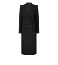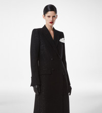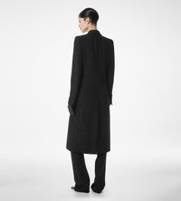 PRODUCT NO: CP1662-FAX1629 This TOM FORD coat is made of sequined wool blend crepe, which gives a natural wave effect, and double splittable construction. The peak lapel with slightly curved sleeves creates a distinctive and formal silhouette. An example of sartorial care, the details are hand-finished and include a handmade chest pocket, lapel buttonhole, and stitched silk bar tacks at the cuffs. The buttons are self fabric covered with five kissing cuff, one of which is longer, a unique TOM FORD element. Lined flap, double jet and internal pockets, a single vent, and a half-lined interior complete this refined statement. Alterations are complimentary in store, whether you purchase online or in person. Contact our Customer Care to reserve your fitting appointment. Composition: horn buttons, 48% wool, 35% polyester, 17% virgin wool with lining made of 59% cupro, 41% silk Fit: tailored