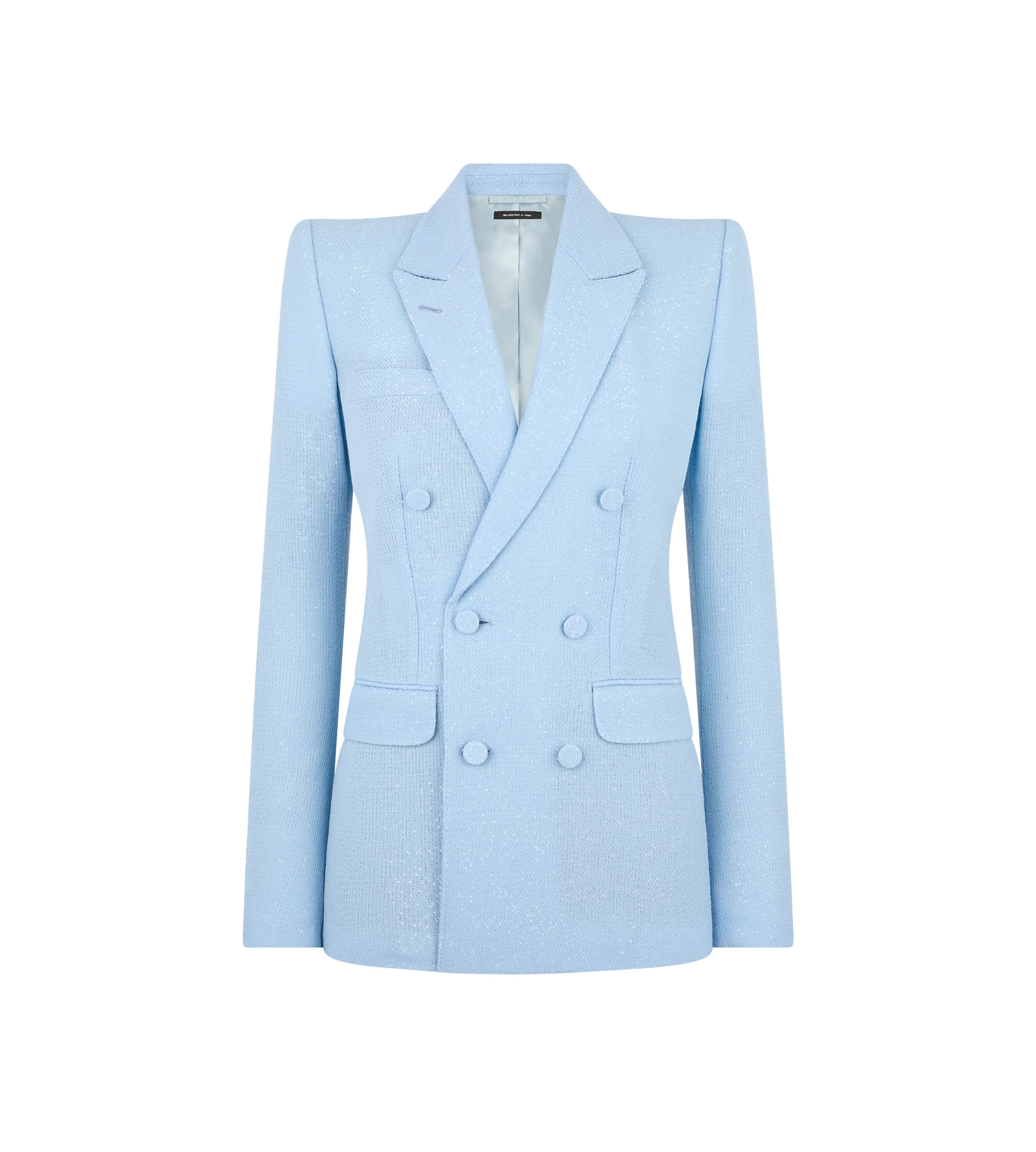 SEQUINED WOOL BLEND CREPE DOUBLE BREASTED JACKET