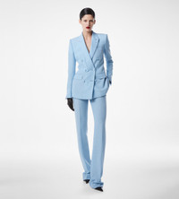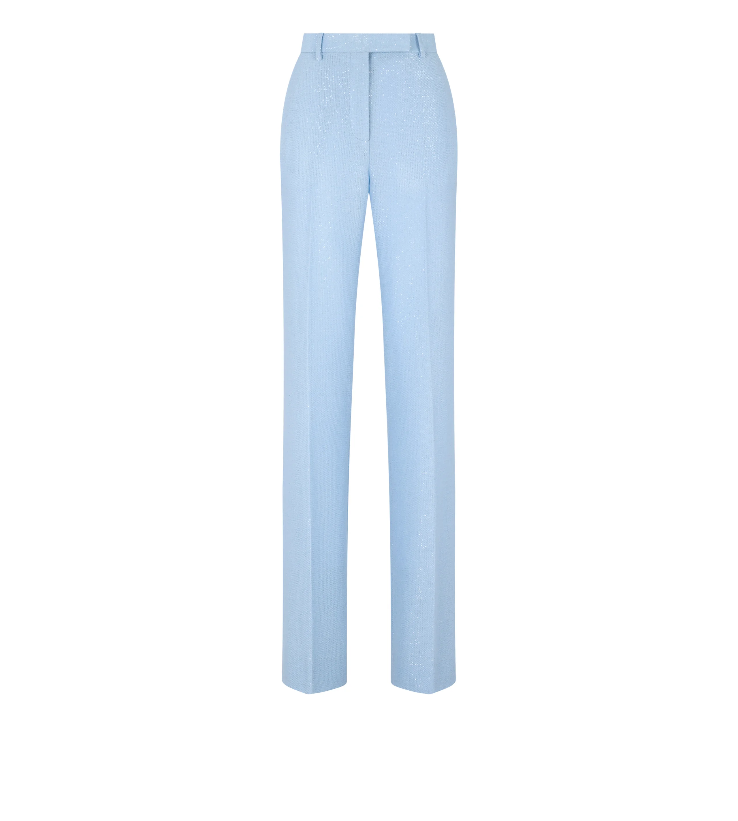 - TAILORED STRAIGHT PANTS - EXTENDED WAISTBAND - SIDE SLANTED POCKETS WITH HAND-STITCHED SILK BAR TACKS - DOUBLE JET POCKETS ON THE BACK - INTERNAL COTTON WAISTBAND - INTERNAL BUTTON - HOOK AND EYE CLOSURE - SELF FABRIC COVERED BUTTONS - FULLY LINED - CRAFTED IN SEQUINED WOOL BLEND CREPE - 48% WOOL 35% POLYESTER 17% VIRGIN WOOL