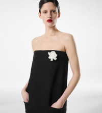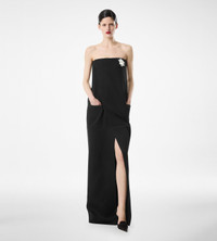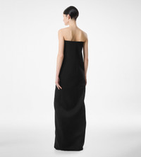 PRODUCT NO: AB3611-FAX1613 An ode to precision and sensuality, this strapless smoking evening dress balances tailored strength with evening engagements. Cut in sharp wool through the bodice and softened by a fluid satin skirt, it evokes the essence of TOM FORD tailoring reimagined. Tailoring details such as functional chest pocket, double jet pockets, and silk grosgrain side bands, anchor the silhouette. An internal satin corset with boning offers sculptural support, while the full silk lining elevates the piece, and the experience of wearing it. Closed with a concealed side zip. Alterations are complimentary in store, whether you purchase online or in person. Contact our Customer Care to reserve your fitting appointment. Unveiled on the runway, this look is part of Haider Ackermann’s first Winter 2025 Fashion Show. Composition: 100% wool with details in 73% acetate, 27% viscose, lining is constructed with one side made of 59% cupro, 41% silk, and a second lining made of 100% silk Made in Italy