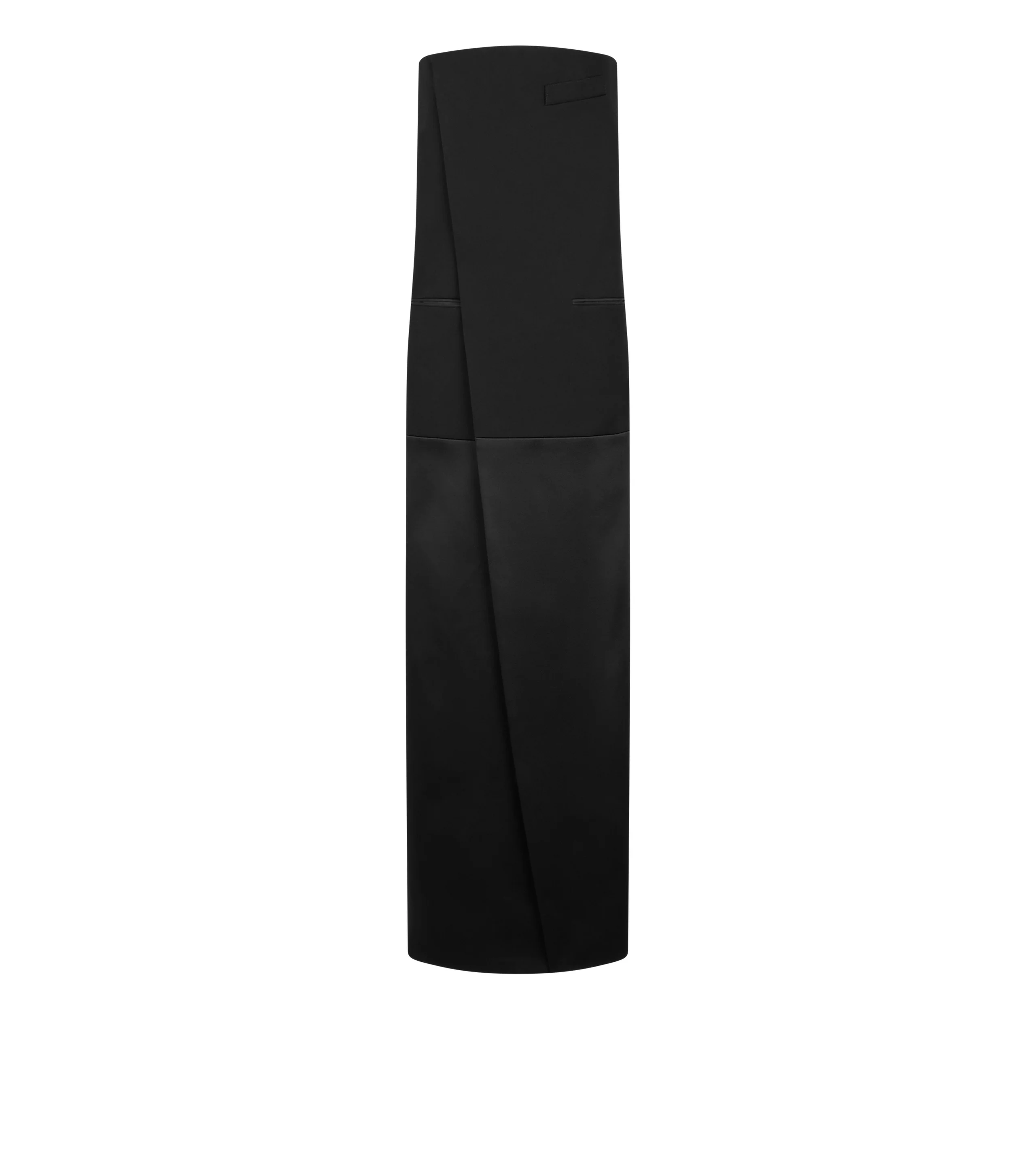 - STRAPLESS SMOKING EVENING DRESS - WRAP CLOSURE - TAILORING CONSTRUCTION DETAILS - HANDMADE FUNCTIONAL CHEST POCKET - DOUBLE JET TAILORING POCKETS - SILK GROSGRAIN ALONG JET POCKETS AND SIDE TUXEDO BANDS - SHARP TAILORED WOOL FOR THE UPPER PART OF THE DRESS - SATIN FOR THE SKIRT - INTERNAL CORSET DRESS IN SATIN WITH BONING STRUCTURE - SIDE INVISIBLE ZIP - FULLY LINED - CRAFTED IN SHARP WOOL - 100% WOOL