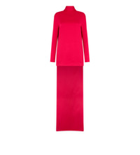 - MOCK NECK ASYMMETRIC COCKTAIL DRESS - FRONT MINI DRESS WITH A FLOOR LENGTH BACK - MOCK NECK AT THE FRONT TRANSITIONS INTO A DEEP OPENING AT THE CENTRE BACK - COLLAR AT THE FRONT EXTENDS INTO A LONG, OPENING LIKE SCARF AT THE BACK - SKINNY LONG SLEEVES CONTRAST WITH A VOLUMINOUS, STRAIGHT BODY - RELAXED DROPPED SHOULDER - SIDE POCKETS - FULLY LINED IN 100% SILK - CRAFTED IN SHINY BONDED VISCOSE BLEND CREPE - 73% ACETATE 27% VISCOSE