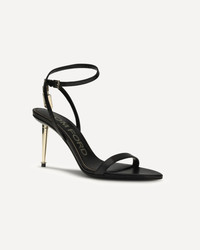 The Shiny leather padlock pointy naked Sandal by Tom Ford showcases sharp sophistication through a sculpted pointed shape and signature metal accents. The adjustable ankle strap features engraved-logo buckles, while the iconic padlock adds a defining touch. The 105 mm metal spike heel introduces a bold, architectural presence, complemented by a leather lining that enhances the overall finesse of the design. DETAILS - Sku: W2748LKD002P_NAA - Season: SS26 - Composition: UPPER 100% Goatskin/hircus Goatskin SOLE 100% Goatskin/hircus Goatskin - MADE IN ITALY