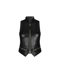 - FITTED BIKER WAISTCOAT - DOUBLE ENDED SIGNATURE ZIP CLOSURE - LEATHER ZIP PULLER WITH EMBOSSED TF LOGO - FRONT SLANTED ZIPPER POCKETS - SMOOTH LEATHER FRAMING ALONG FRONT ZIP AND POCKETS - TOM FORD SIGNATURE LEATHER GRAB HANDLE DETAIL - TOM FORD SIGNATURE PRESS STUD BUTTONS ON BACK COLLAR - VINTAGE SILVER FINISH AND TONAL HARDWARE - FULLY LINED IN VISCOSE - CRAFTED IN SHINY PLONGE LAMB LEATHER - 100% LAMB LEATHER