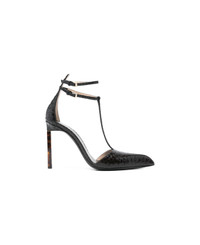 black leather crocodile effect stiletto heel T-bar strap ankle strap buckle fastening Made in: Italy Color: BROWN/BLACK Size and fit: - heel: 10.5 centimetres Model number: LCL516PW3763