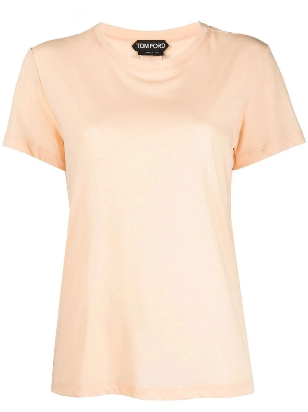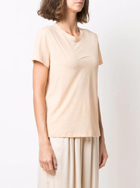 short-sleeve cotton T-shirt nude cotton jersey knit logo patch to the rear round neck short sleeves straight hem Made in Italy Composition Cotton 100% SIZE & FIT Model measurements Height 5 ft 9 in(1.76 m) Bust/Chest 33.07 in(84 cm) Hips 34.64 in(88 cm) Waist 25.59 in(65 cm) FittingInformation This piece fits true to size. We recommend you get your regular size Cut for a loose fit Made with a mid-weight fabric Washing instructions Dry Clean Only