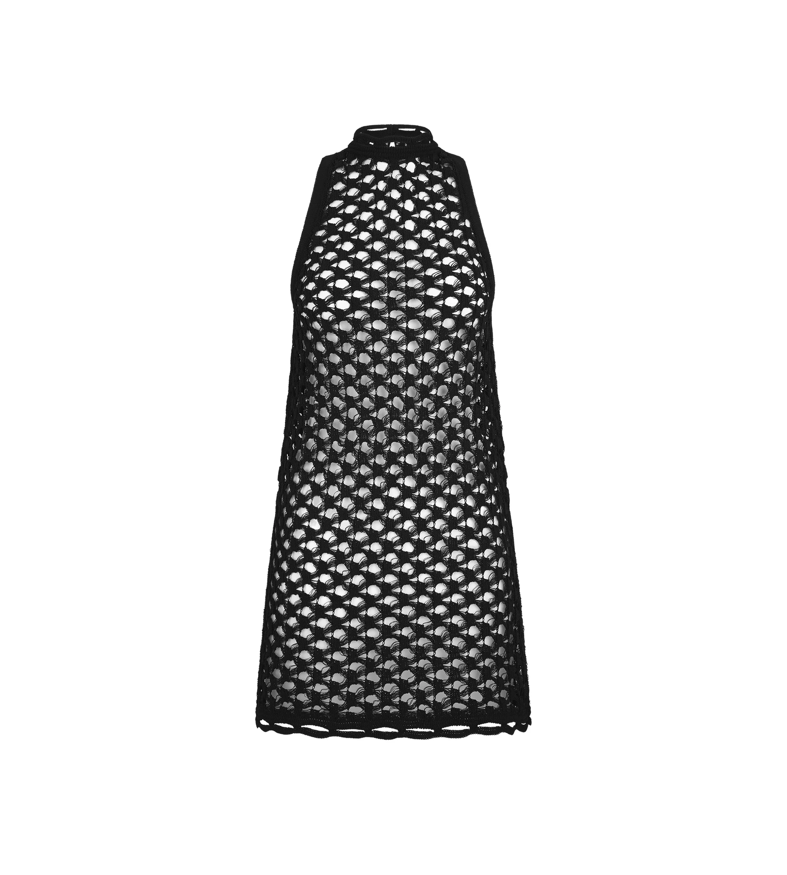 - SLEEVELESS MOCK NECK MINI DRESS - RIBBED DETAILS ON COLLAR AND HEM - MOTHER OF PEARL BUTTONS - CRAFTED IN TECHNICAL COTTON CROCHET - GAUGE 7 - 52% COTTON 48% NYLON