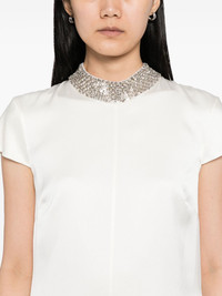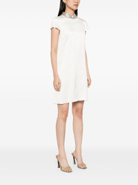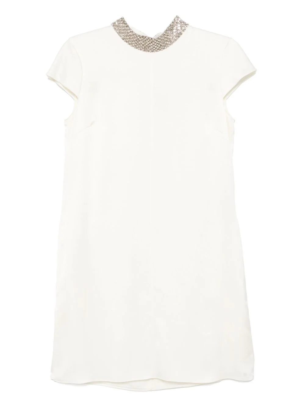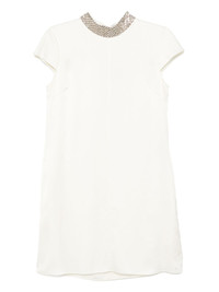short-sleeves mini dress Highlights - Off-white - Concealed rear hook and zip fastening - Stand-up collar - Cap sleeves - Rhinestone embellishment Made in Italy Composition Lining: Silk 100% Outer: Silk 100% SIZE & FIT Model measurements Height 5 ft 10 in(1.77 m) Bust/Chest 30.7 in(78 cm) Hips 35.82 in(91 cm) Waist 21.25 in(54 cm) FittingInformation Designed for a slim fit that sits just away from the body offering a close yet comfortable fit Made from a midweight non-stretch fabric