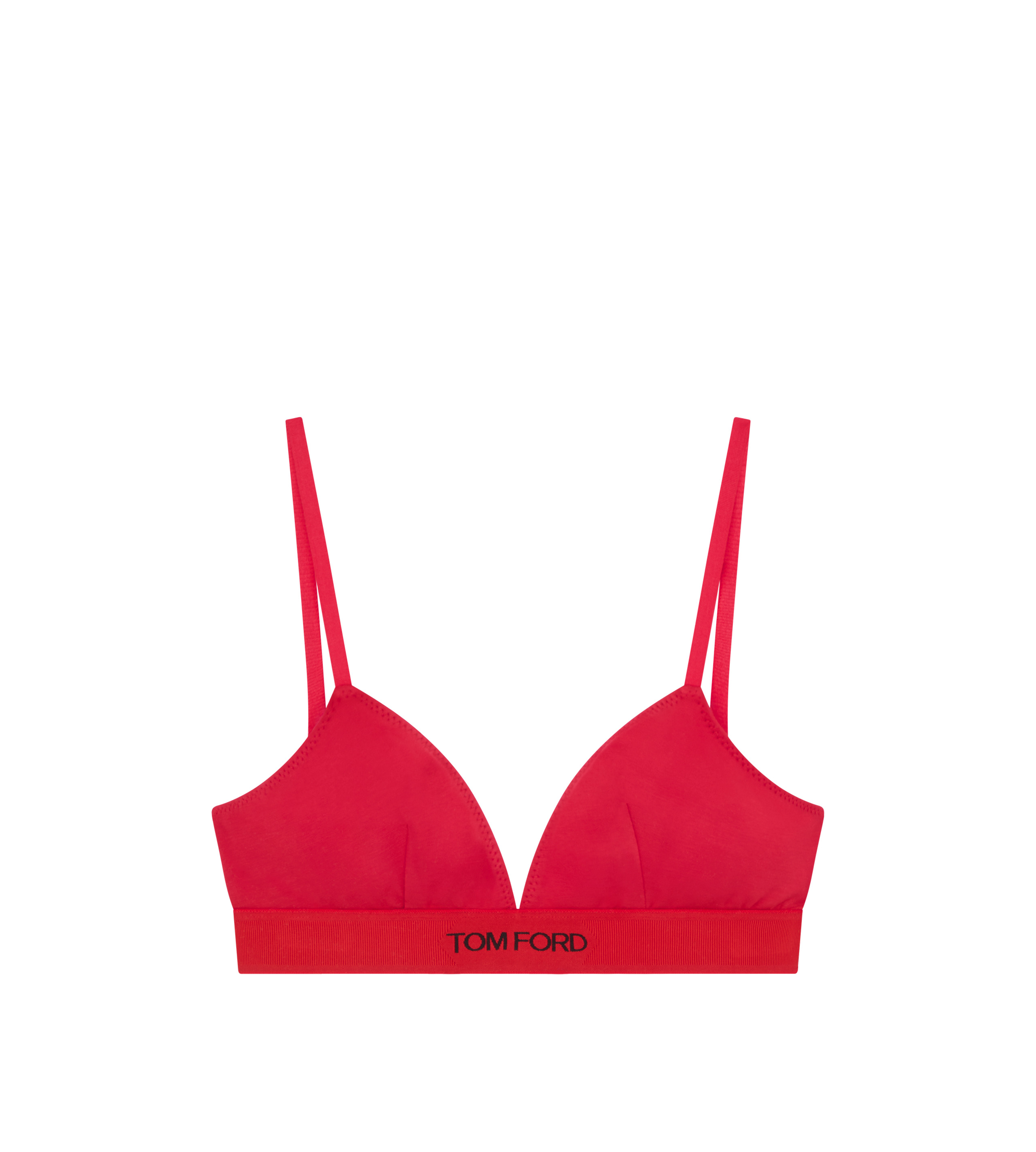 - STRETCH BRA - ELASTICATED BAND WITH TOM FORD JACQUARD LABEL - ELASTIC ADJUSTABLE STRAPS - CENTRE BACK GOLD METAL LOGOED HOOK FOR CLOSURE - GOLD METAL HARDWARE - CRAFTED IN MODAL - 97% MODAL 3% ELASTANE