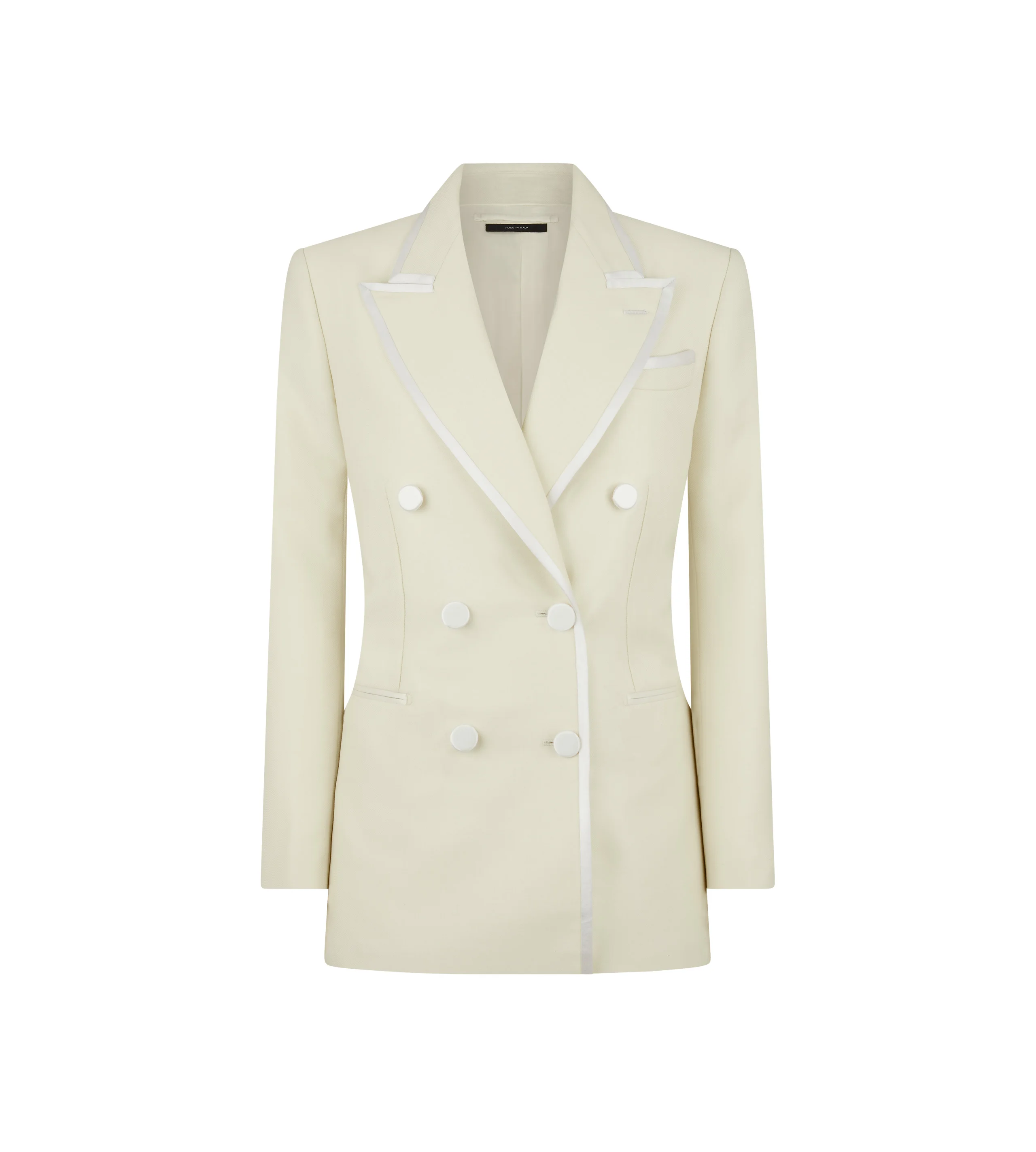 SILK AND MOHAIR BLEND "WALLIS" DOUBLE BREASTED TUXEDO JACKET