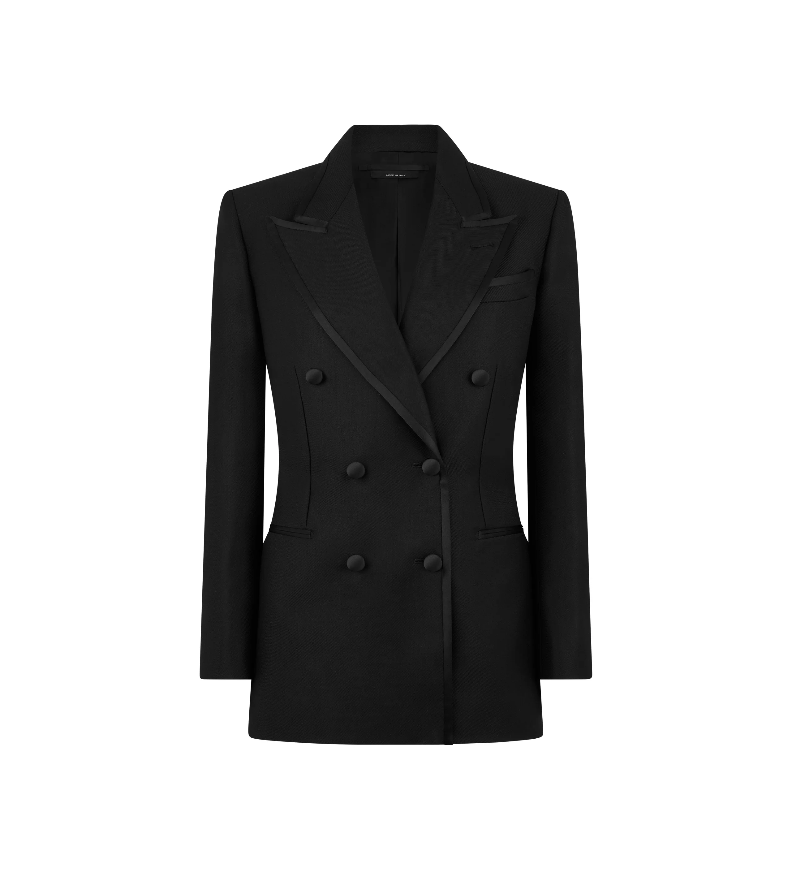 SILK AND MOHAIR BLEND "WALLIS" DOUBLE BREASTED TUXEDO JACKET