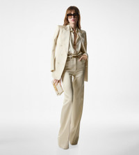 SILK AND WOOL TWILL TAILORED BOOT CUT PANTS