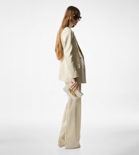 PRODUCT NO: GI2971-FAX1216 A shiny effect on this TOM FORD double-breasted silhouette in silk and wool twill—precise tailoring with a luminous texture. Composition: 59% silk, 41% wool, lining: 59% cupro, 41% silk, buttons: mother of pearl. Made in Italy.