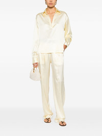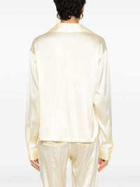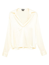 V-neck shirt Highlights - Yellow cream - V-neck - Long sleeves - Buttoned cuffs - Boxy fit - Curved hem Made in Italy Composition Silk 94%, Elastane 6% SIZE & FIT Model measurements Height 5 ft 9 in(1.76 m) Bust/Chest 31.88 in(81 cm) Hips 35.43 in(90 cm) Waist 24.8 in(63 cm) Washing instructions Dry Clean Only