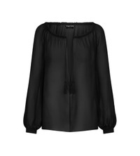 - FLUID FIT BOAT NECK BLOUSE - DEEP NECK OPENING WITH DRAWSTRINGS - SLIGHTLY PUFFED SLEEVES ABOVE CUFFS - SELF COVERED BUTTONS ON CUFFS - CRAFTED IN SILK GEORGETTE - 100% SILK