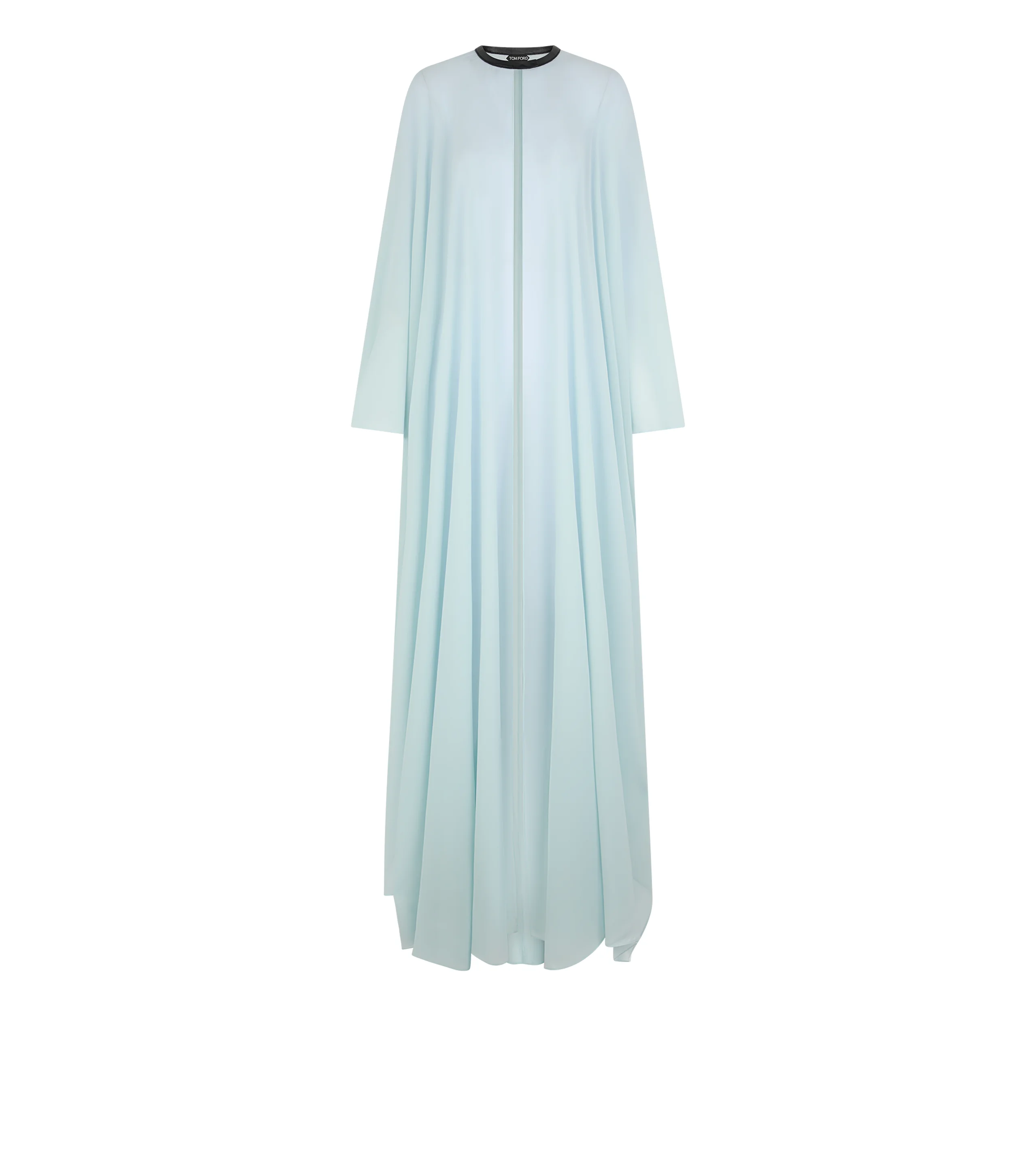 SILK GEORGETTE CREWNECK KAFTAN WITH LEATHER DETAIL