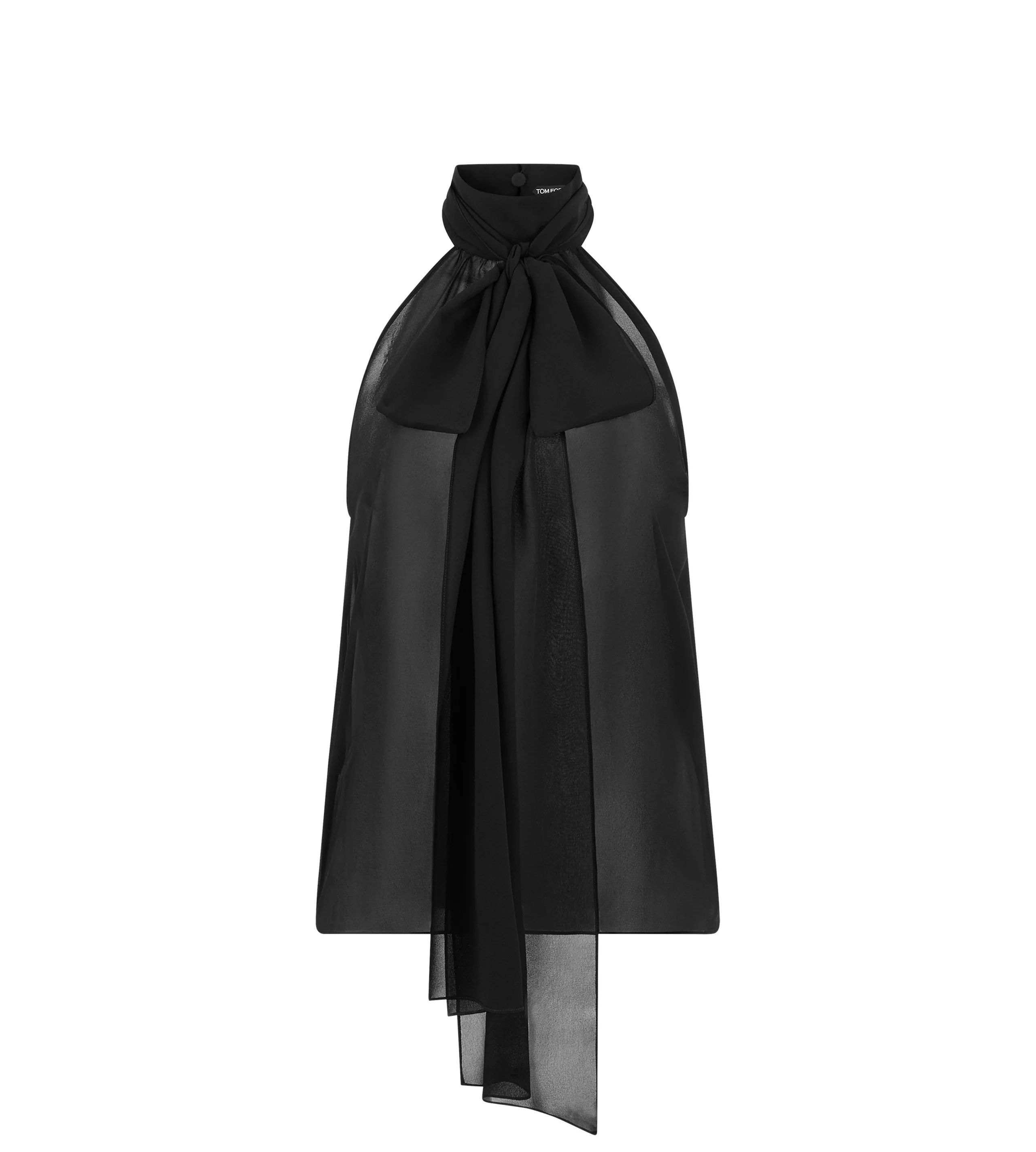 - HALTERNECK FLUID FIT LAVALLIERE BLOUSE - LONG NECK TIE - INVISIBLE ZIP - CRAFTED IN SILK GEORGETTE - 100% SILK