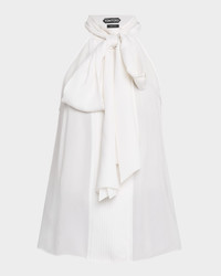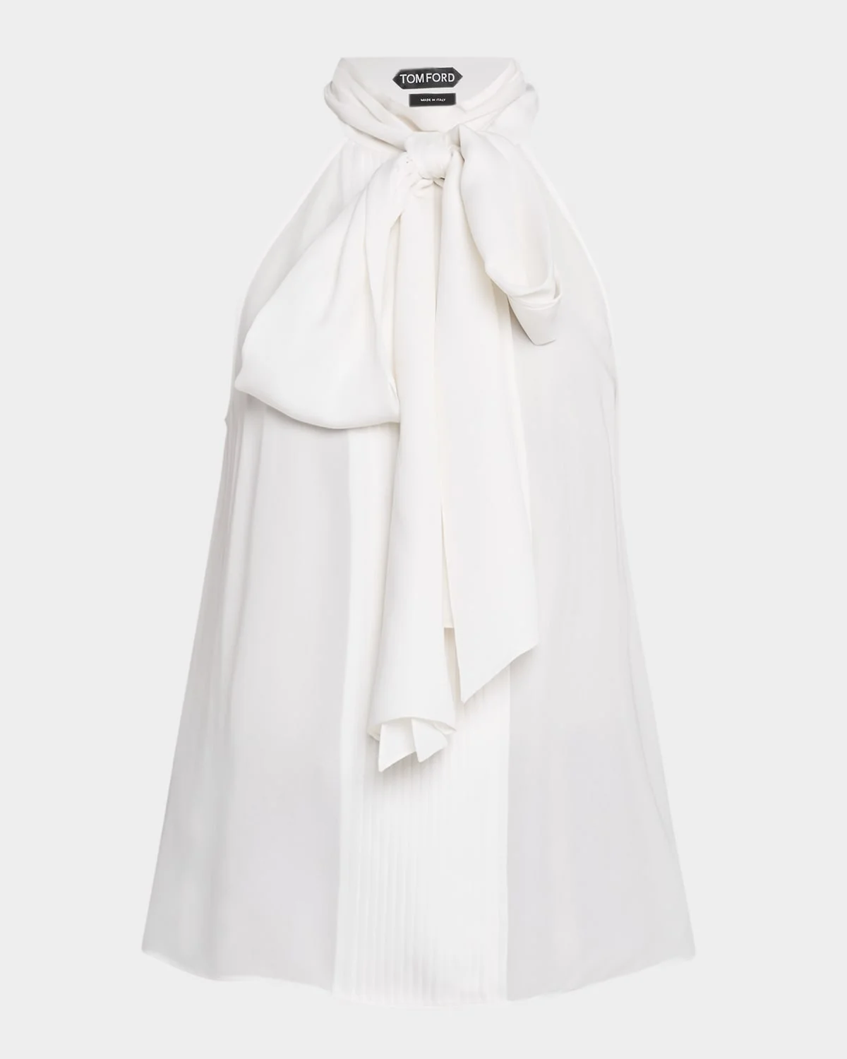TOM FORD top is crafted from washed silk georgette accented with a neck scarf and a pleated front Halter neckline; selftie keyhole back Sleeveless Relaxed fit Slipover style Silk Made in Italy