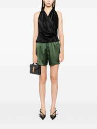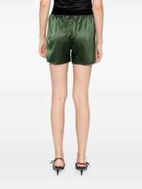 satin shorts Highlights - Dark green - Elasticated waistband - Short side slits Made in Italy Composition Silk 94%, Elastane 6% SIZE & FIT Model measurements Height 5 ft 9 in(1.74 m) Bust/Chest 33.85 in(86 cm) Hips 35.03 in(89 cm) Waist 24.01 in(61 cm) FittingInformation Designed for a slim fit with a close-fitting internal layer The elasticated waist allows for a comfortable fit Made from a midweight stretch fabric, this piece offers elasticity and flexibility when worn Washing instructions Dry Clean Only